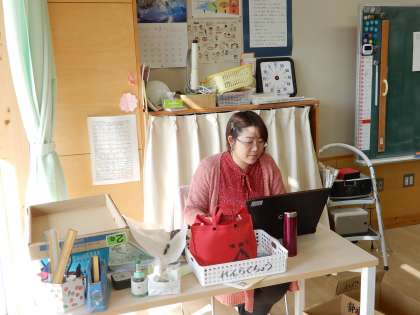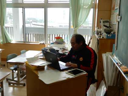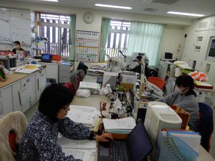 初志部の先生方の様子です。通知表の作成や年度末事務等の業務を行っています。