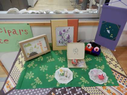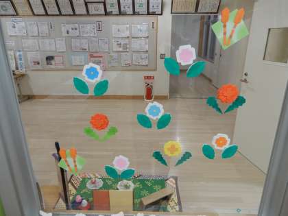 ○校長室前ガラスですが、9年生の生徒が折り紙で綺麗に花を制作してくれました。金丸副校長先生が、季節感のある飾りをしてくれています。皆さんにホームページでしたごらんできないことが残念です。来校することがありましたら、ぜひご覧ください。