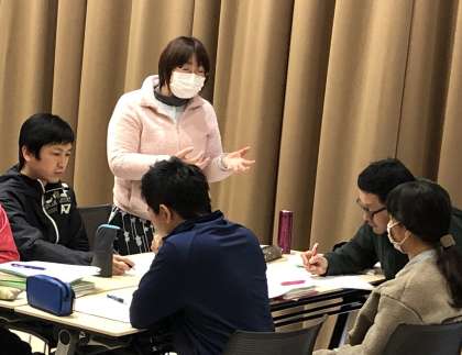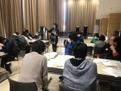 後半は、各教科群に分かれて、評価の具体的な場面や方法、教科間のつながり(カリキュラム・マネジメント)の視点で、話し合いを行いました。活発な意見を交換し、最後に話し合ったことを共有しました。