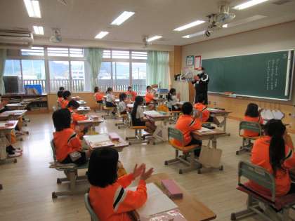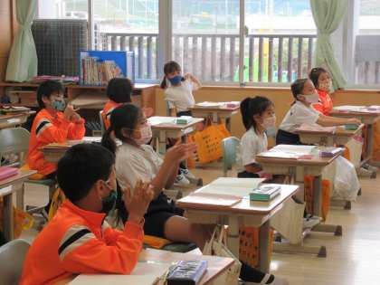 文字で書いたときと読んだときの違いを、手拍子を打つことで比べています。