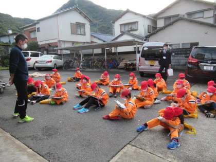 今日の総合的な学習の時間は、志下地区のひもの工場見学です。