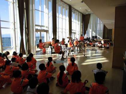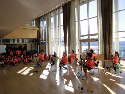 昼休み、吹奏楽部がミニコンサートを開きました。黒潮祭で演奏した人気曲やクリスマス気分も味わえる内容で、聴いているみんなもとても楽しそうでした。