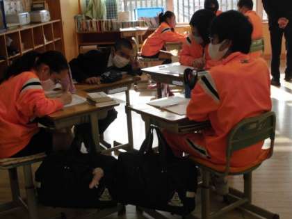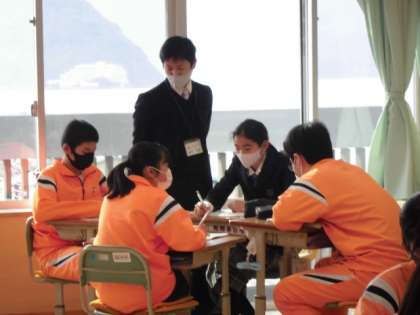 「文法 助詞ってどんなものなの?」グループで話し合っています。