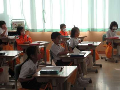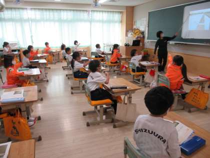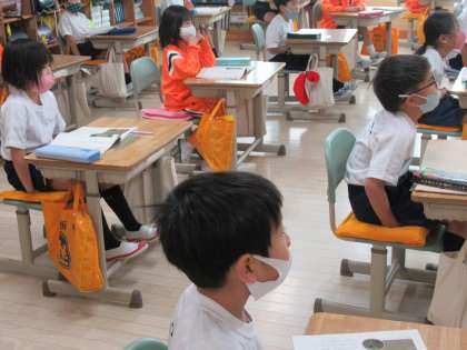 静浦では見られない、田んぼと用水路の映像をとても集中して見ています。