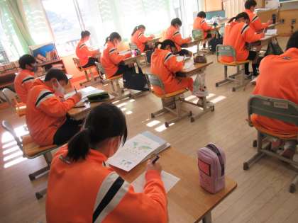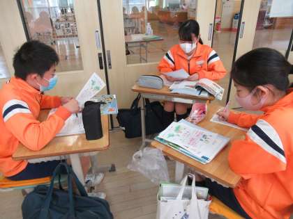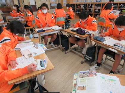 3種類の課題資料から、自分が興味を持ったものを選択し、課題ごとに集まって情報化交換をしています。