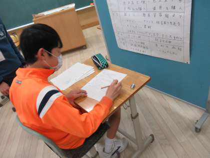 職業調べ:いろいろな職業について調べたことを模造紙にまとめています。