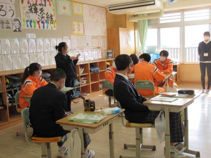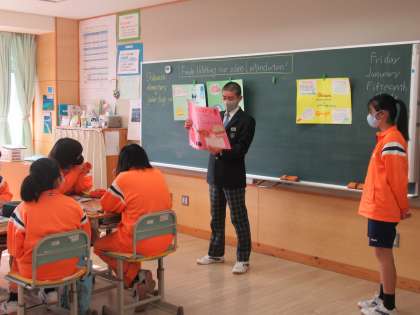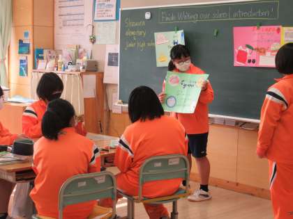 静浦小中一貫学校の紹介をALTのチェルシー先生に聞いてもらいました。