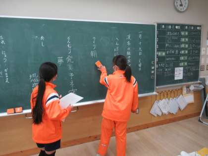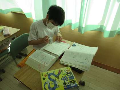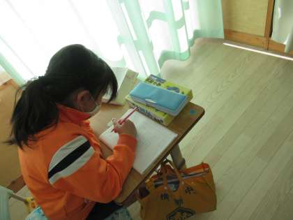 へん、つくり、かんむり、あしを使った漢字を辞書で調べて書いています。