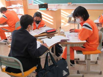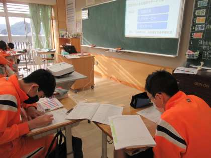 市が作成した資料から様々な介護福祉の形態について調べ、介護福祉の在り方について考えています。