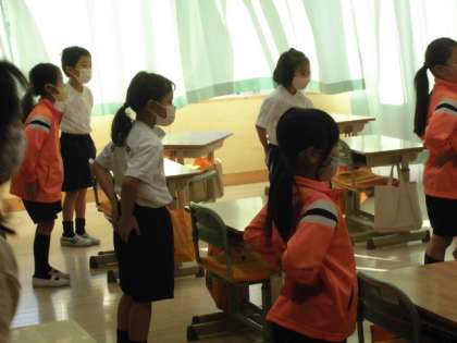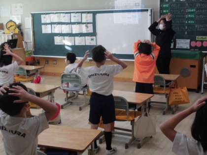 カードに描いてあるものを英語で答えました。その後、ALTの先生と英語を使ったゲームを楽しんでいます。