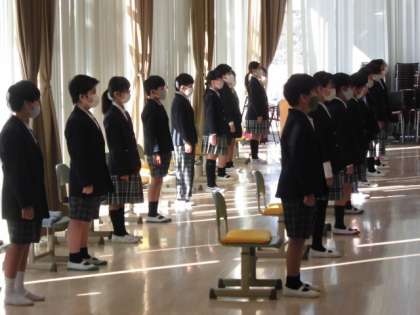 5時間目、4年生による「2分の1 成人式」が行われました。保護者へのお礼、将来の夢の発表、呼びかけ、合唱、全員の真剣な態度により、たいへん立派な式となりました。