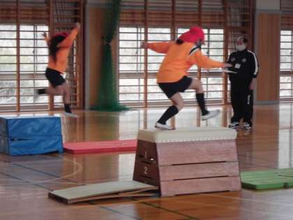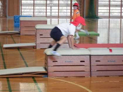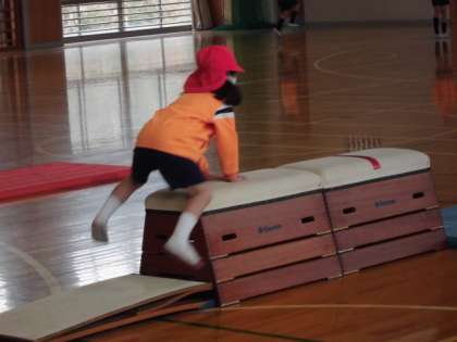 「とびばこ」いろいろなとび方の練習をしています。
