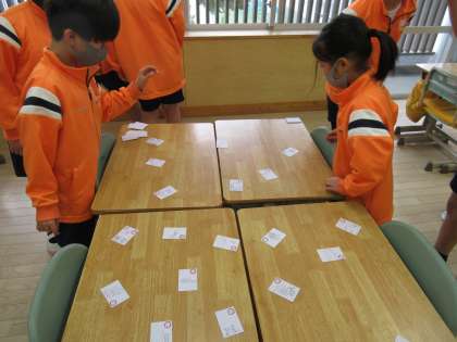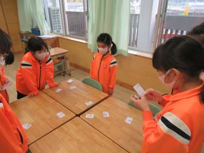 2年生と4年生が、手作りの静浦や沼津のことをカルタにしたものを使って、カルタバトルをしました。