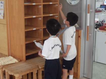 初めて入る教室にびっくりしている1年生もいましたが、2年生がやさしくリードしてくれました。