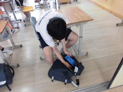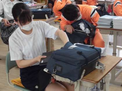 今日は、2回目のChromebook持ち帰りです。生徒は、慣れた手つきでランドカバンにしまっています。