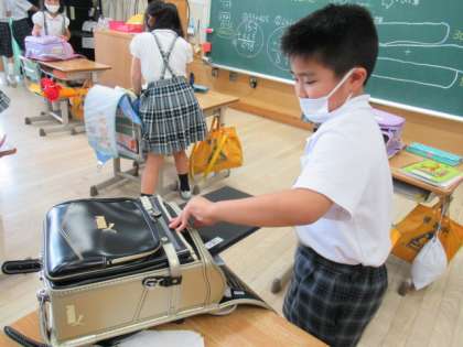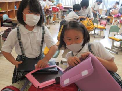 初志部の子どもたちも、Chromebookをランドセルにしまっていました。この土日の間に指定された動画を見ることに挑戦します。