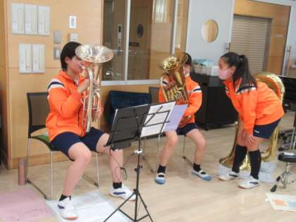 吹奏楽部は、楽器の演奏に挑戦していました。6年生には、先輩方が横につき、優しく教えてくれました。そのおかげで、初めてさわったという子も、音がしっかりと出ていました。6年生も先輩方もとてもうれしそうでした。