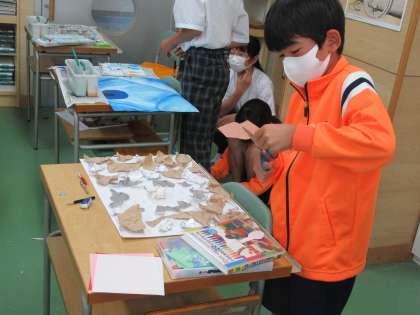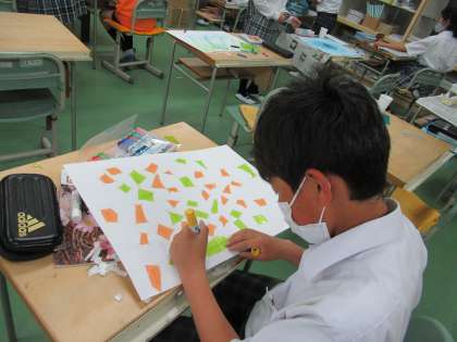 音のイメージを形や色で表現するという難しいテーマに、悩みながらも全力で挑戦しています。