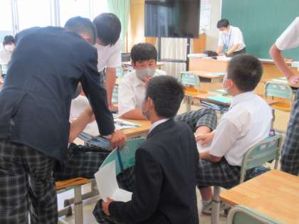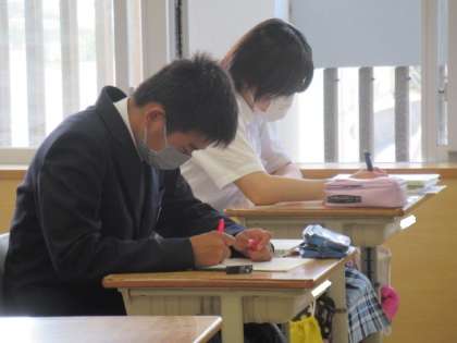 8Aの国語では、友達と交流して短歌を読み深めた後、短歌を物語に書き換える学習に入っていました。
