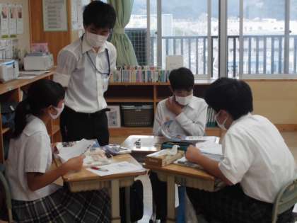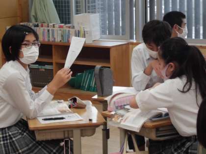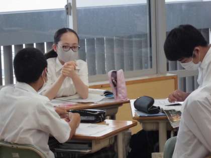 「地租改正・徴兵令・学制」教育勅語に述べられていることついて、グループで話し合っていました。