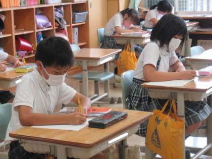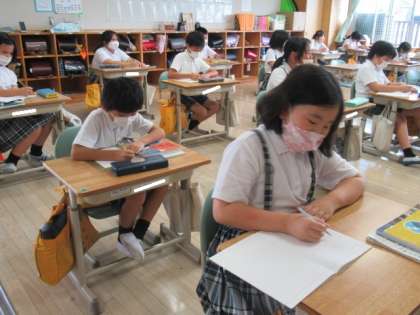 先生が、教室に、川の水を持ってきてくれました。川の水はそのまま飲めないのに、水道の水はそのまま飲めるのはなぜなのか、みんなで意見を出し合っていました。
