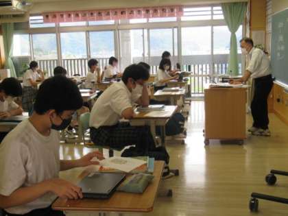 社会では、災害への備えで優先すべきことは何なのか、自分の考えをワークシートにまとめていました。
