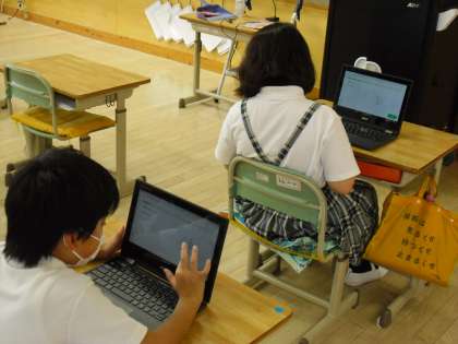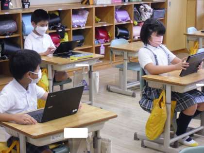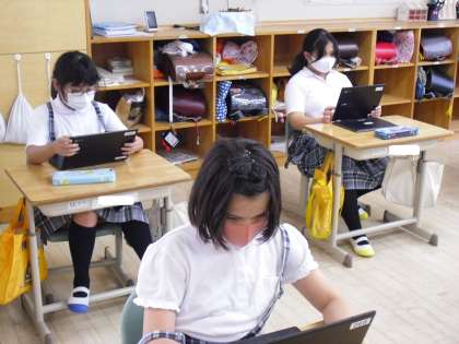 図書館を利用するグループと、ChromeBookでAIドリルに挑戦するグループに分かれて活動していました。AIドリルの問題を次々に解いている様子です。