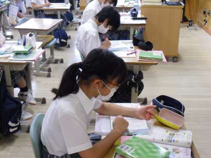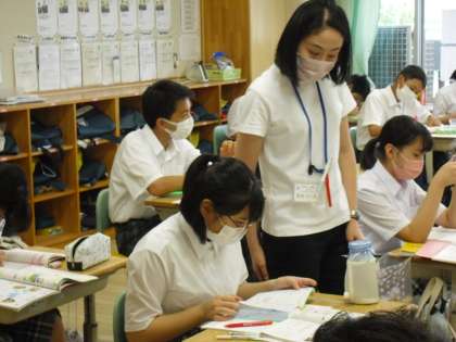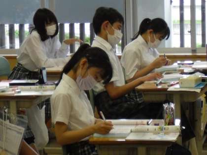 テキストの新出単語の意味の確認をしていました。辞書を使って素早く調べています。意味が分かったら発音の練習へ、テンポ良く授業が進んでいきます。