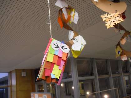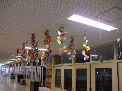 1A前のコモンスペースに、秋を感じさせる掲示物が飾られています。昼休みに、みんなで作ったかわいい作品の数々です。