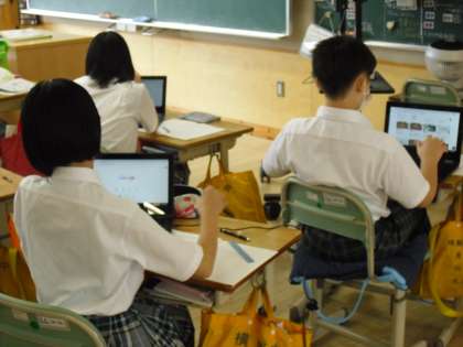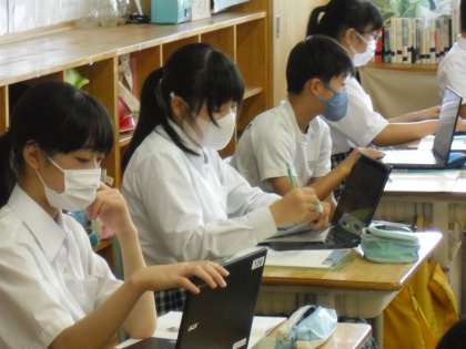 「生物と水のつながり」水は生物と、どのようにかかわりあっているのか、ChromeBookで調べています。