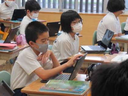 社会では、米作りについての学習です。1年間の作業の中で、1番重要な仕事は何なのかを、一人一人が考えています。