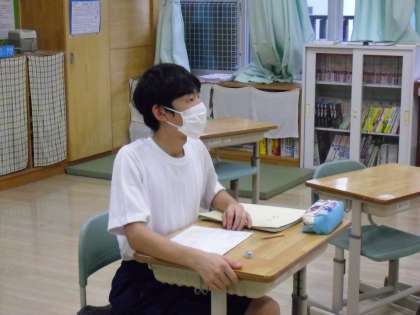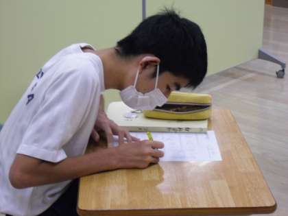 中C 「分数の計算」プリントの問題を次々に解いています。