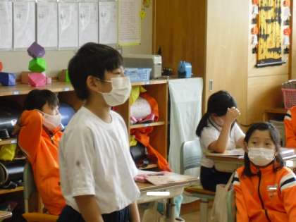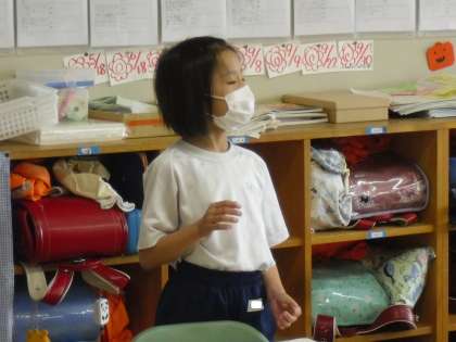 かがみで 光を たくさん集めると、明るさ や あたたかさ は どうかわるか、考えを 発表しているところでした。