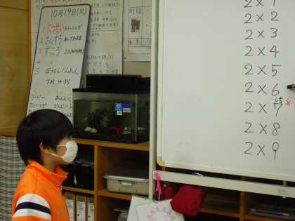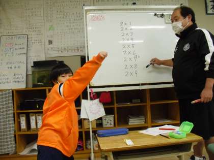 「かけ算」九九の学習です。二のだんに挑戦し、スムーズに発表することができました。ポーズがきまっています。