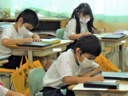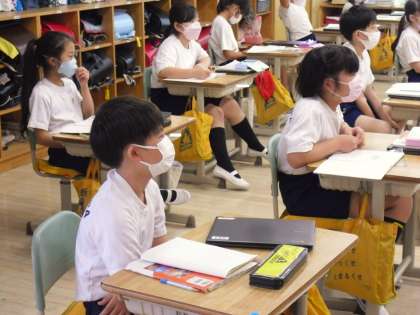 「ごみの分別」分別され、集められた ごみは どうなるか、また、もやした後の灰はどこに行くのかについて、考えたり、先生の説明を聞いたりしているところでした。