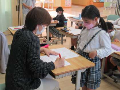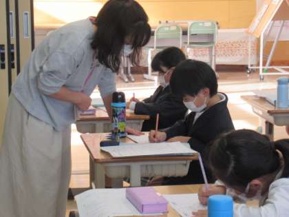 「とびうお塾」の先生が準備してくださったプリントは、かけ算の筆算の復習でした。どの子も意欲的に取り組みました。