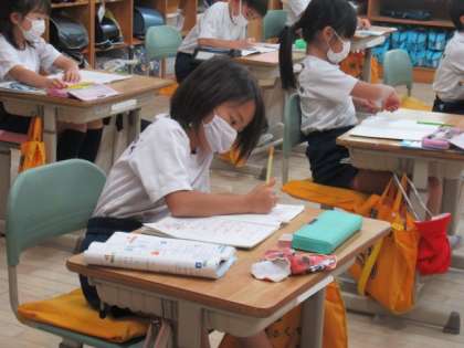 水のかさの単位の学習です。1リットルは何デシリットルなのか、前の授業で学習した内容を思い出して考えていきます。