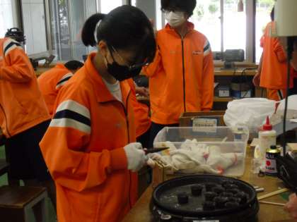 低融合金を使ったキーホルダー作りを進めています。技術室の利用が再開され、久しぶりの活動です。