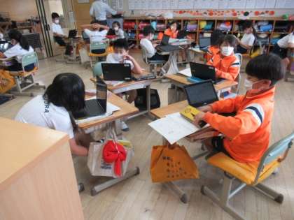 理科では、各グループの実験の結果を表にまとめ、そこから分かることをグループで出し合っていました。
