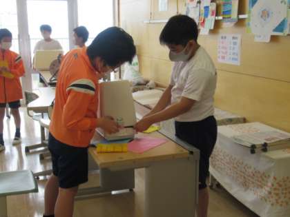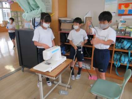 5年生の家庭科では、ミシンの学習が始まったようです。今日は、ミシンの各部分の名前、操作の仕方などを確認しました。片付けまできちんと行うことができました。
