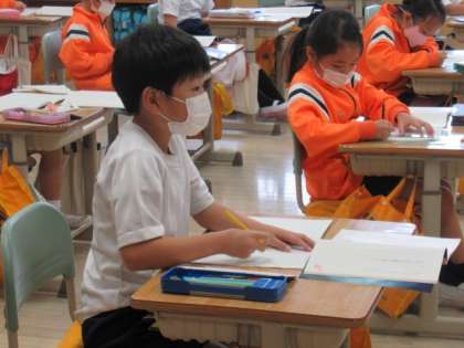 2年生の国語では、詩について学習していました。教科書に出ている詩の特徴をみんなでさがし、どのように工夫すればいきいきとした詩になるのかを考えていきます。