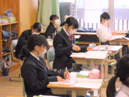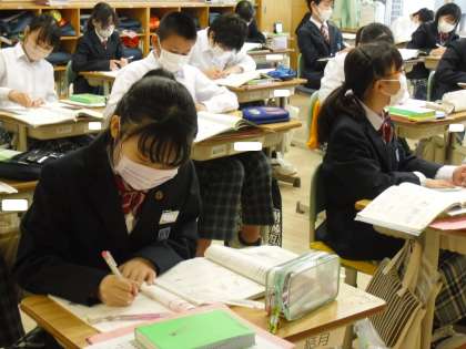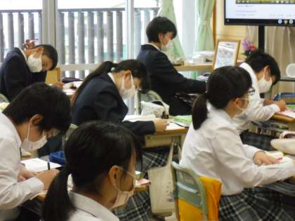 「when」について学習していました。When is your birthday?の先生の質問に、英語でスムーズに答えていました。学習事項をノートにまとめているところです。