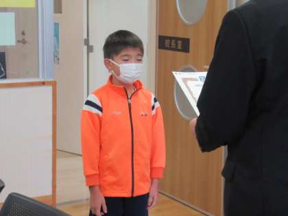 静浦FCが市内の大会で優勝しました。所属する本校児童の表彰の様子です。これからもサッカーの練習をがんばってください!