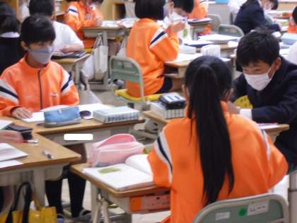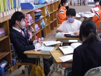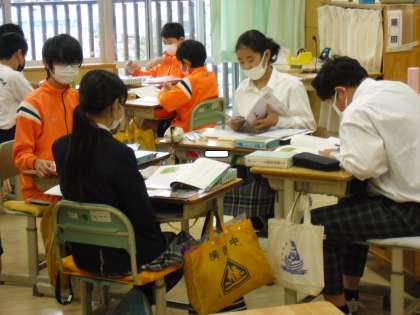 「『本物』の森で未来を守る」どんな文章構成になっているのか、グループで考えているところでした。