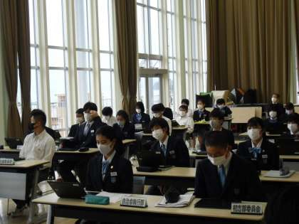 5時間目に自治会総会が行われました。前後期の自治会執行部、専門委員長、志部委員長は黒潮ホールで前期の活動報告や後期の活動計画を発表します。
