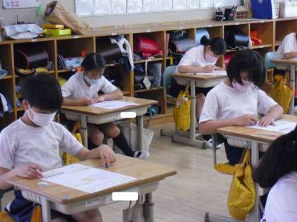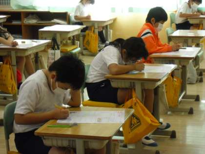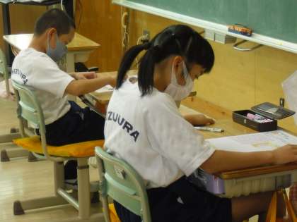 単元テストを行っていました。みんな真剣な表情でがんばっています。
