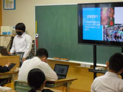 個人でまとめたスライド「沼津ツアー」の発表を行っていました。沼津の名所やおすすめのお店が上手にまとめられていました。