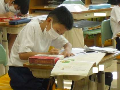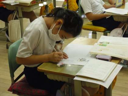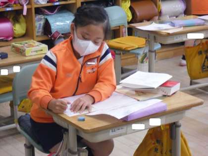 「ミニギャラリー」何の絵か、どこに注目して解説すればいいかを考えて、プリントに文章をまとめています。
