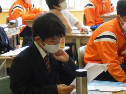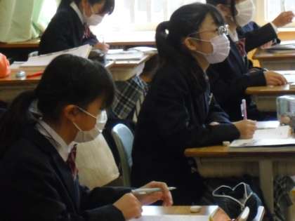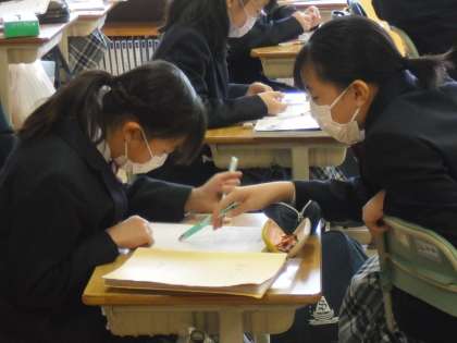 反比例の学習を進めています。練習問題の答えを仲間と確認し、発表しているところです。
