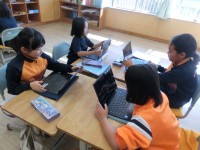 最後に3・4年合同でのゲームです。赤チームと白チームに分かれ、前半は女子、後半は男子が行いました。待っている選手は全力応援です。